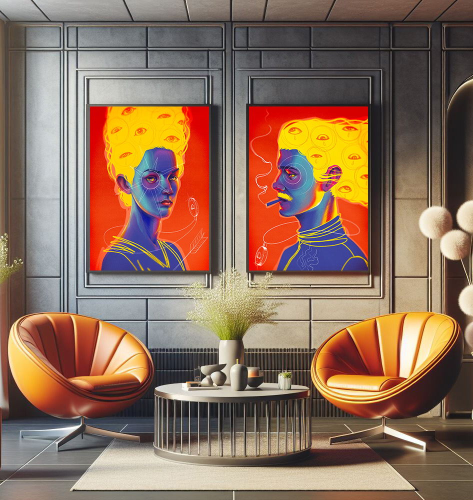 These two portraits without the experimentation of colors and shapes that has been developing in recent months. It is the search to connect portrait with freer ideas, and see where that union could take me and this is the result.